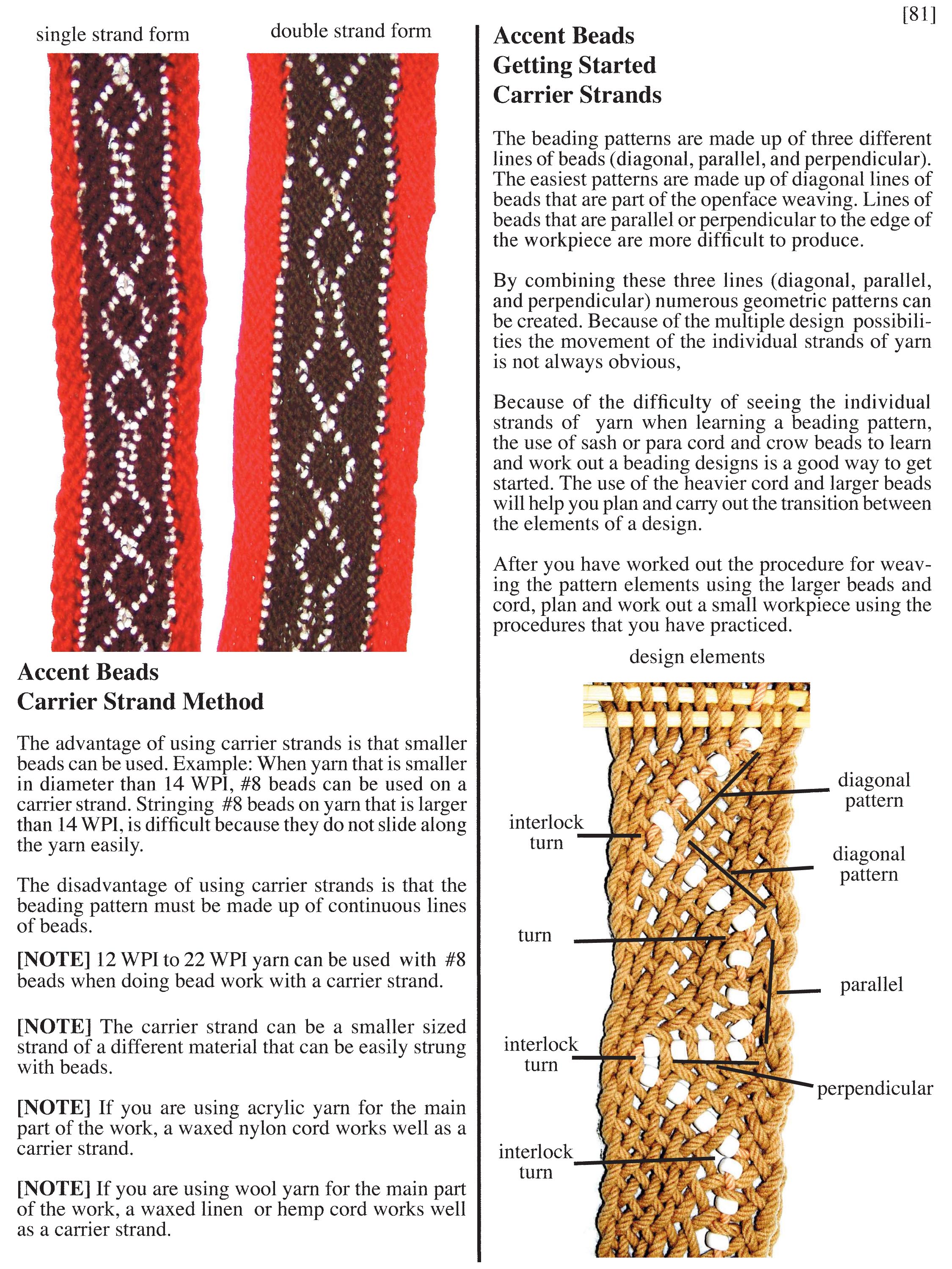 openface beading patterns as presented in Fingerwoven Sashes Basic Techniques by Gerald L Findley