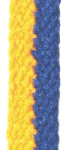 OPENFACE WEAVING MENUE Openface weaving goes by several names. Plain face, oblique, and interface are some of the names. There are probably more names than this. The variety of names comes from the attempts to choose a name that describes this form of weaving. In openface weaving, the weave is open so that all the strands are visible on the face of the finished work. Openface weaving is done by weaving two sets of strands together. One set of strands crosses the work on a diagonal from left to right and the other set crosses the work on a diagonal from right to left. Because there are no clear warp and weft strands as there are in warpface fingerweaving, openface weaving is more closely related to braiding than to loom weaving. The following photographs show examples of openface weaving and various ways to decorate it. |