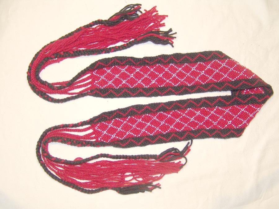 - Pattern ---- Open face, solid with diamond bead pattern and twined zig-zag pattern on border