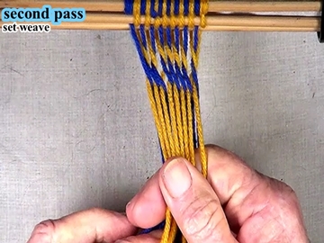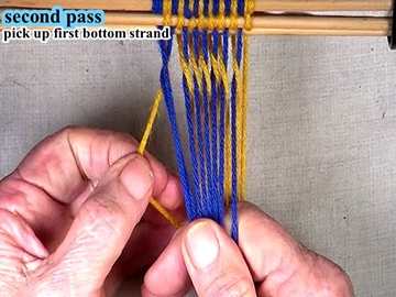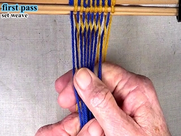 Following the directions for the first pass, weave the first pass of the next section. |