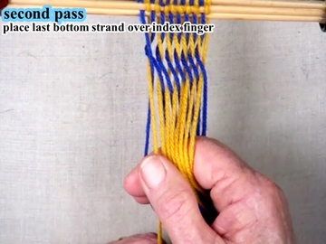 Following the directions for the second pass,(S-twist-RL-top.html) weave the first pass of the next section.
