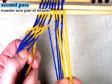 Following the directions for the first pass, weave the first pass of the next section. |