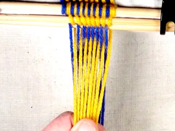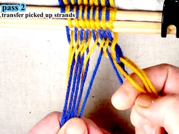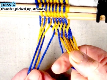 [OBSERVE] The first two strands on the left hand side are in the bottom shed layer ( under the index finger of the right hand).