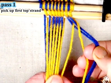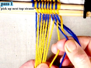 Use the index and second fingers of the right hand to pick up the next top layer strand.