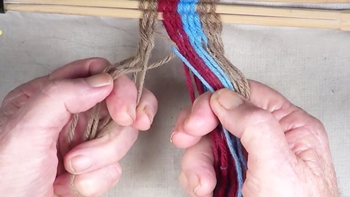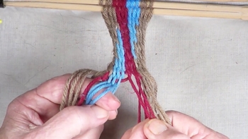 Finish the second pass of [S] twist interlinked fingerweaving. |