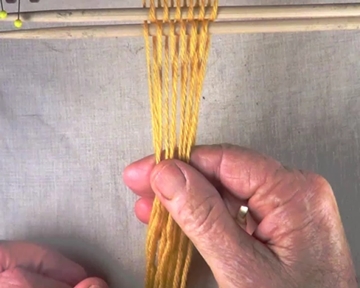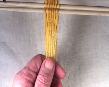 | When planning a diagonally interlaced project, the configuration of the strands on the headstick establishes the foundation for the weaving. Several decisions must be made before the headstick can be configured. First, the number of strands. Next, the direction the weave will be worked. Finally the configuration of the shed. |