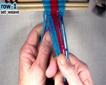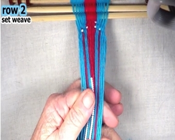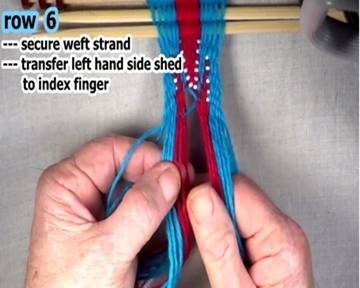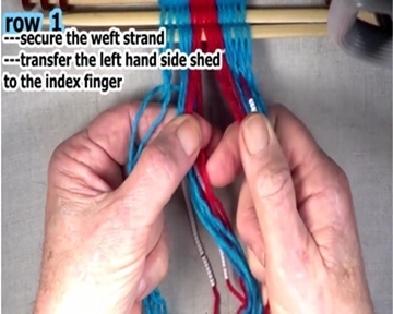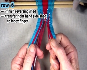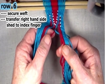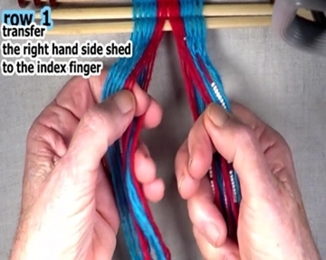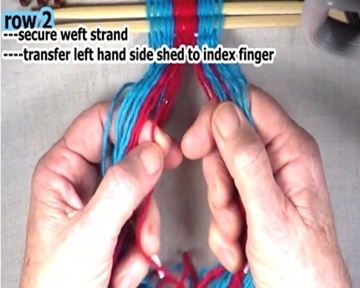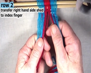 Transfer the left hand side shed to the left hand index finger. Set the row 2 weave.