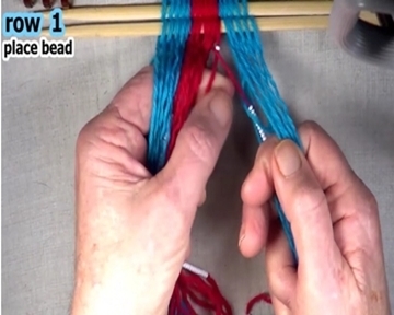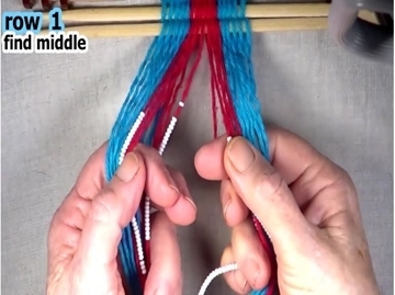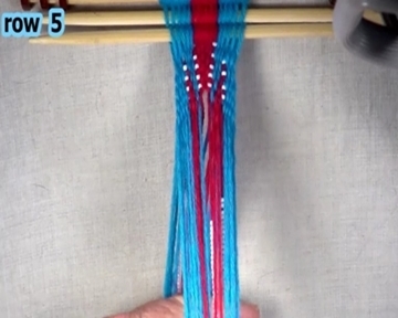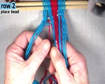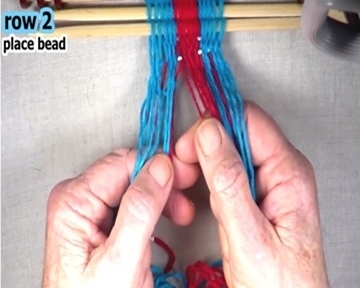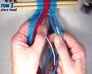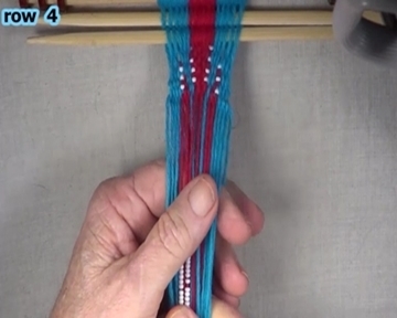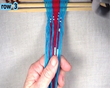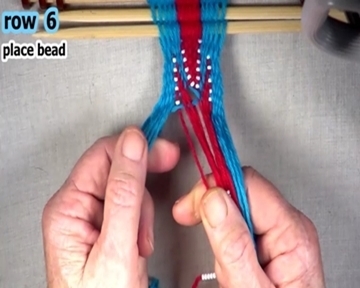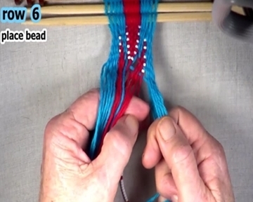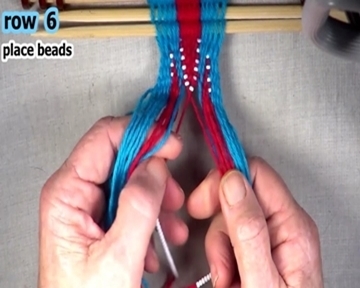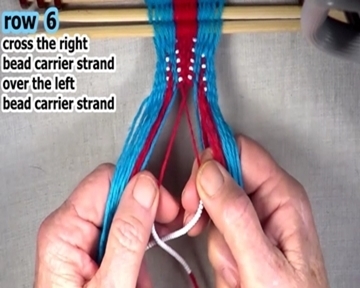 When the beads are placed, the middle bead carrier strands will become the row 6 weft strands.