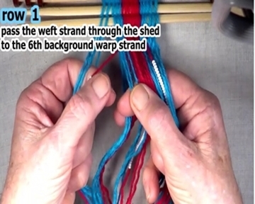 [NOTE] The warp strand that was the 6th background color warp strand becomes the next segment of the row 1 right hand side weft strand. |
