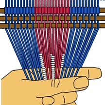 [NOTE] When starting a row of weaving, each row's right hand side weft strand is the first warp strand to the left of the middle of the work-piecce.