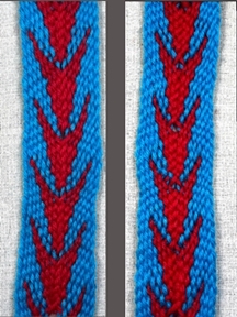 [NOTE] The arrowhead pattern that has the two middle warp strands in the same layer of the shed produces a pattern that has a front and a back.