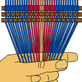 [NOTE] make sure that the over/under configuration is maintained. Keep the warp strands parallel. |
