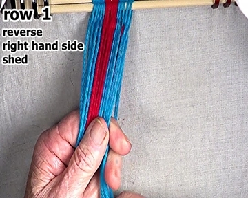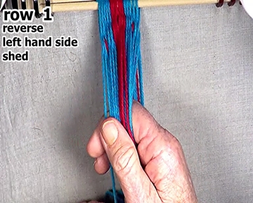 [NOTE] When starting the left hand side of a row of weaving, each row's left side weft strand is the first warp strand on the left hand side of the right hand side shed. |