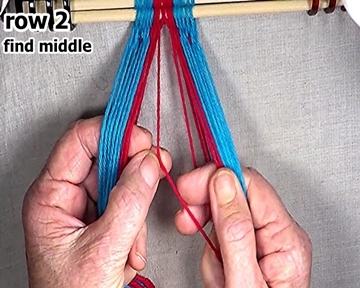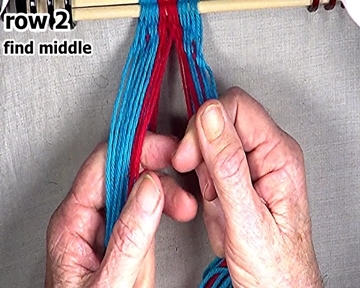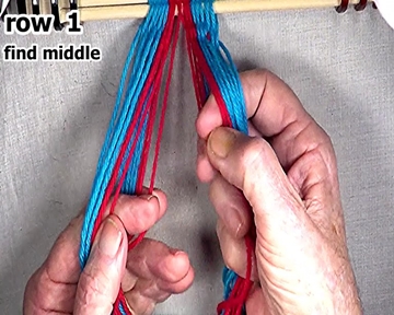 [NOTE] When starting a row of weaving, each row's right side weft strand is the first warp strand to the left of the middle. |