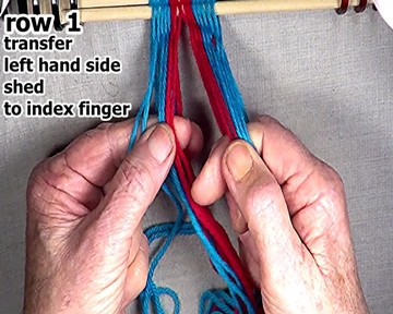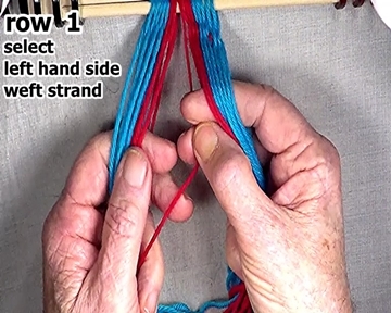 Select the left hand side row 1 weft strand.