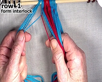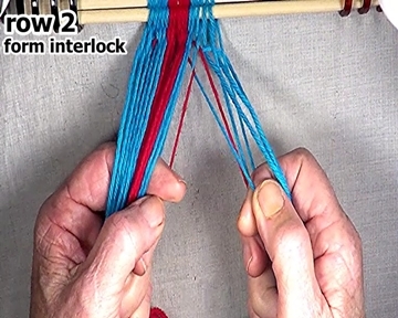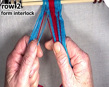 Form the interlock on the left hand side of the row 2 weft strand.