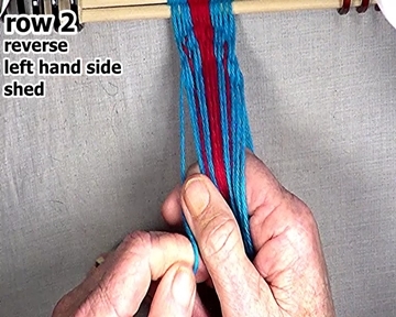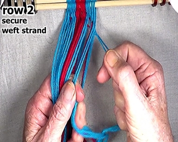Then secure the row 2 left hand side weft strand.
