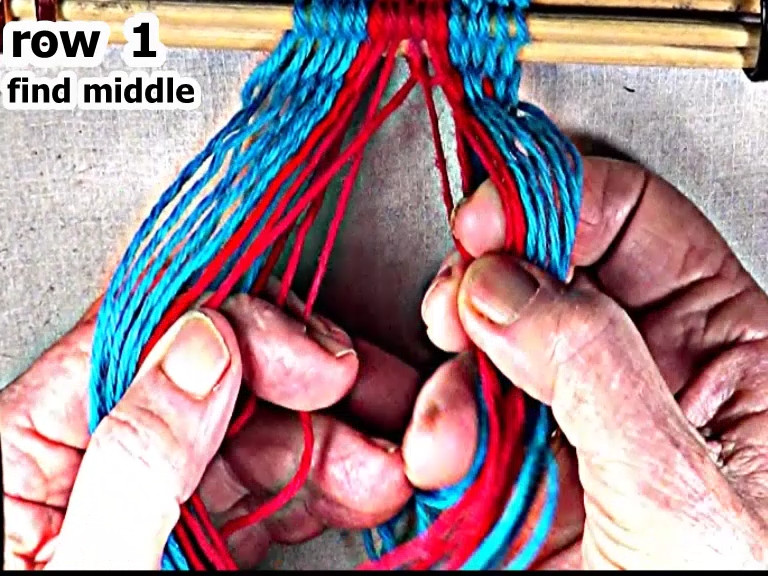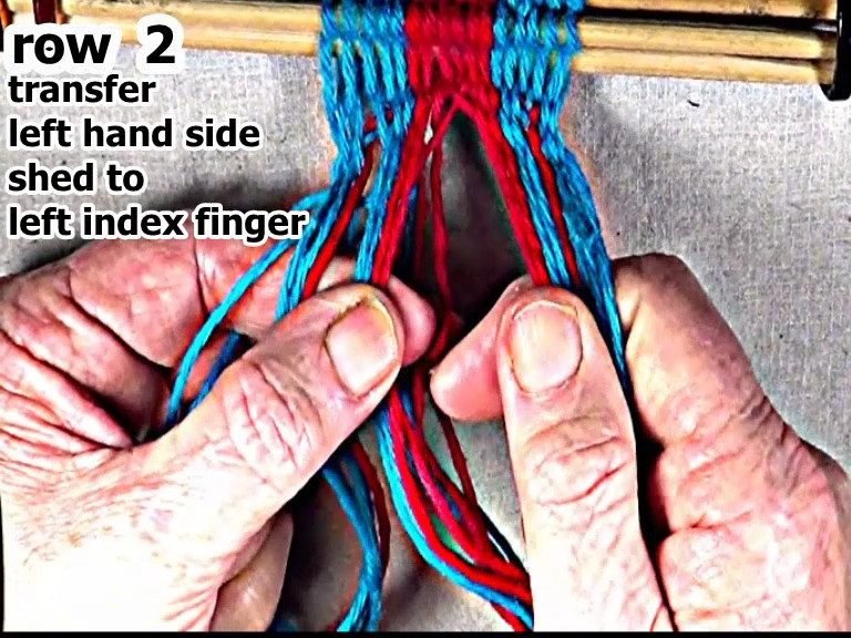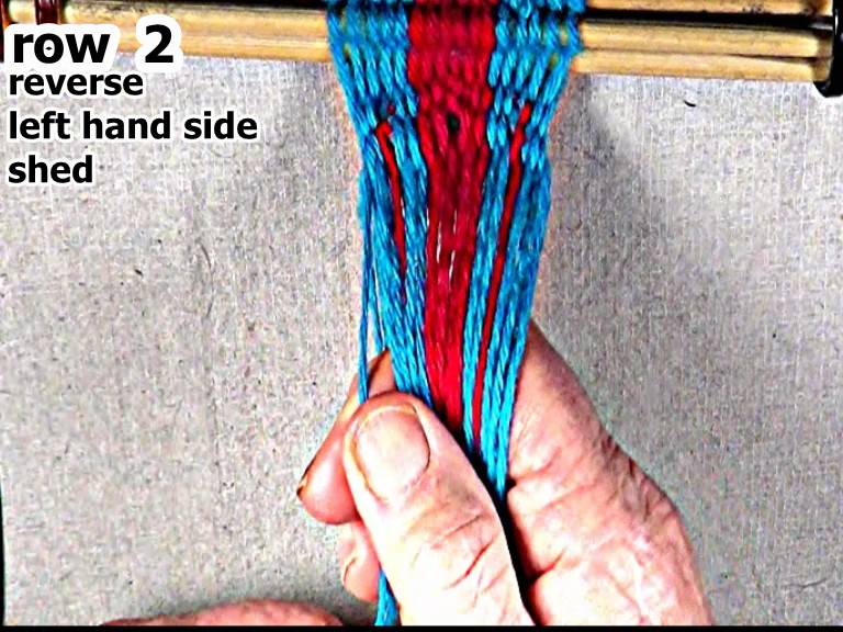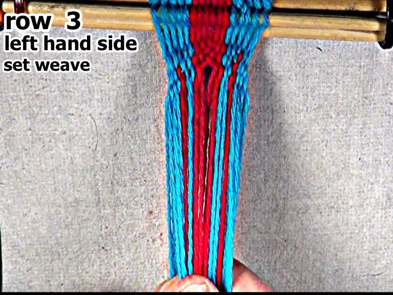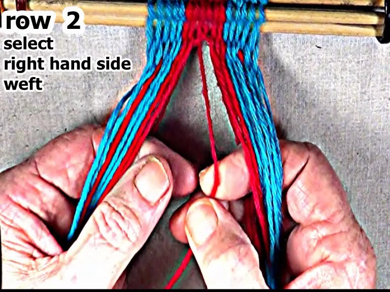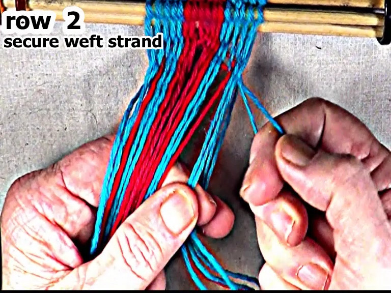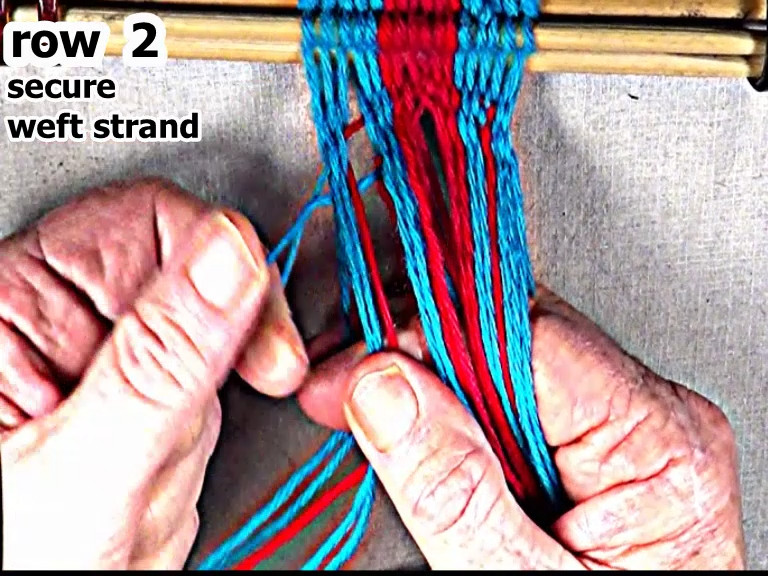 Then secure the row 2 left hand side weft strand.