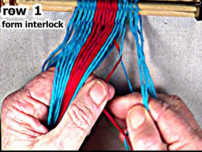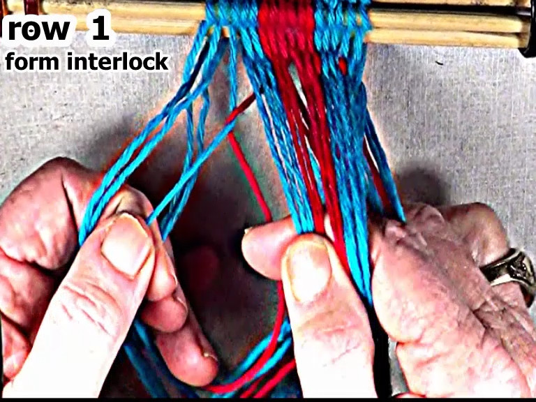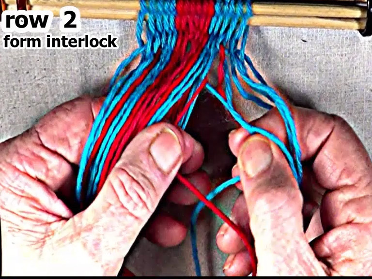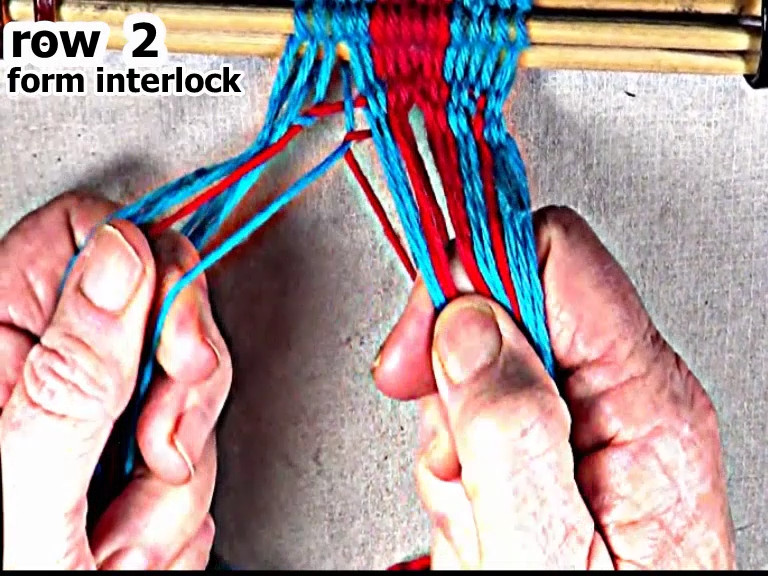 Form the interlock on the left hand side of the row 2 weft strand.