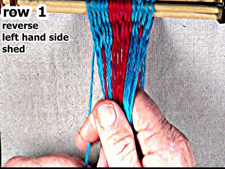 [NOTE] When starting the left hand side of a row of weaving, each row's left side weft strand is the first warp strand on the left hand side of the right hand side shed. |