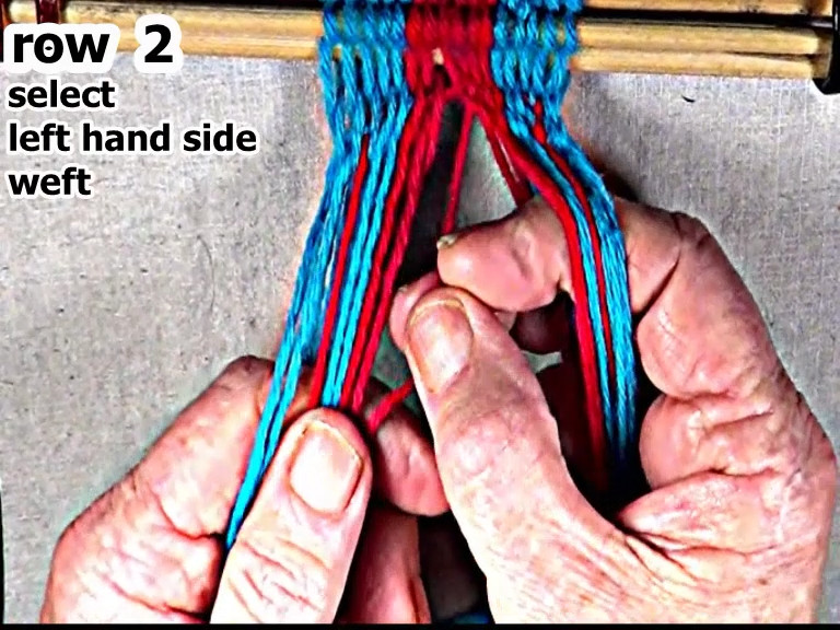 Select the left side row 2 weft strand.