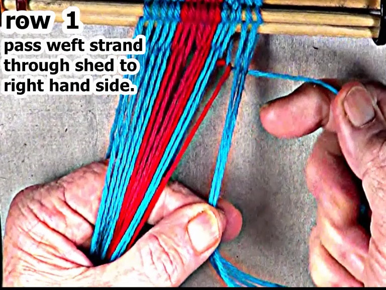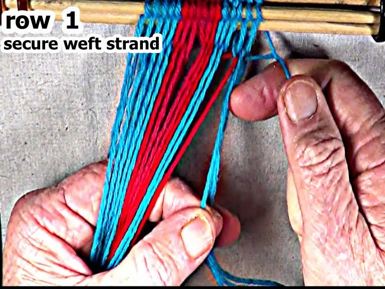 | Secure the row 1 left hand side weft strand. |