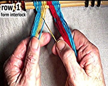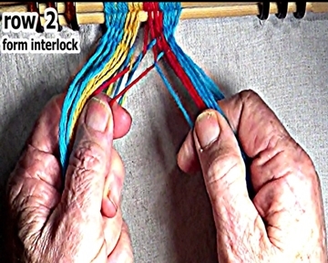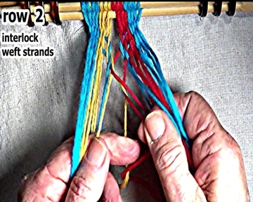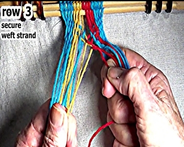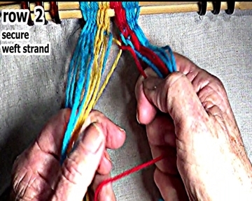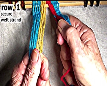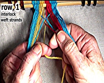 Secure the row 1 right side weft strand interlock. |