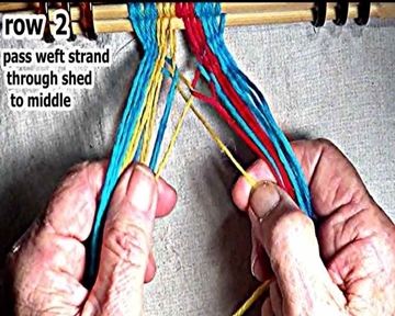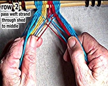 Pass the row 2 weft strand to the middle. |