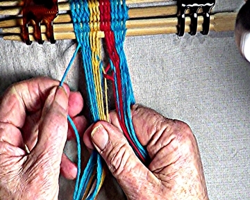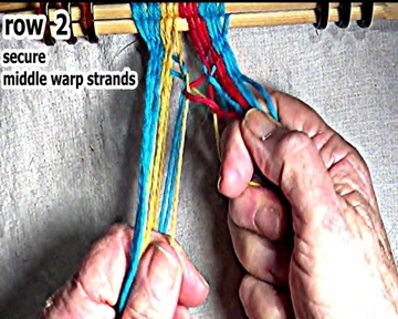 Secure the interlocked middle warp strands. |