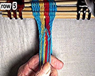 Weave row 5. The same sequesence of weaving steps are requires as used for row 4. |