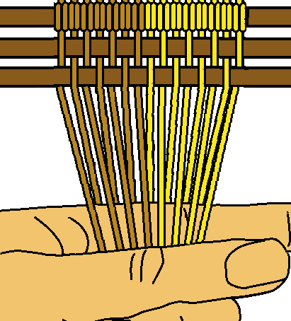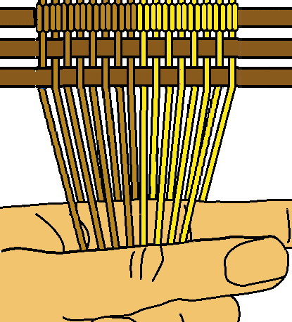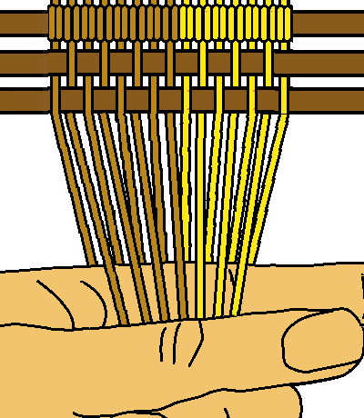 The differences between the four headstick setups are small but they must be considered when aditional bands of finger weaving are joined to make a wider work-piece.