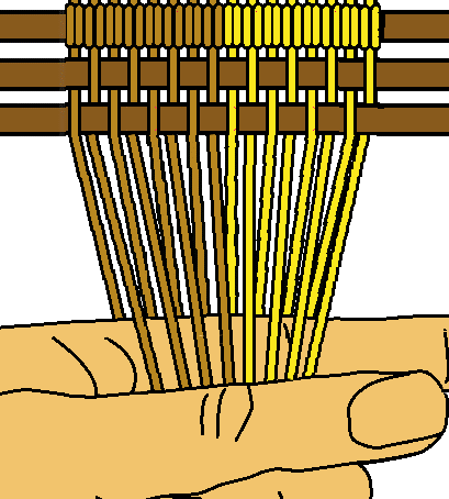 • If the selected weft strand starts is in the bottom shed layer, the weft strand will become a warp strand in the top layer of the shed.