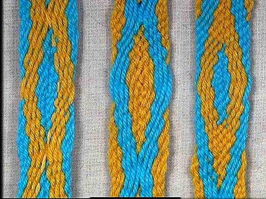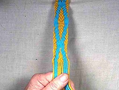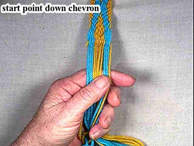 The size and apperence of the diamonds depends on the length of the weaving between the chevron reversals and where the chevron reversals take place. The video illustrates some of the variations that can be produced. |