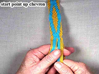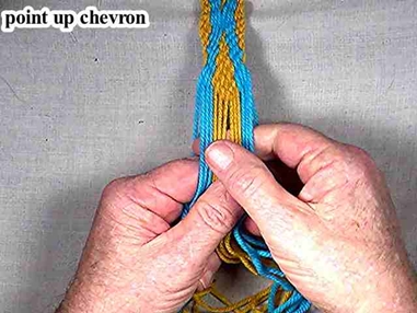 Continue weaving the point up chevron portion of the diamond.