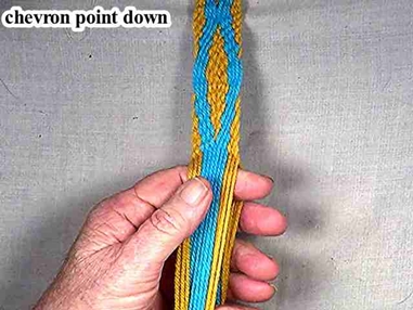 | Complete the diamond pattern by following the procedure for weaving the point down chevron pattern. |