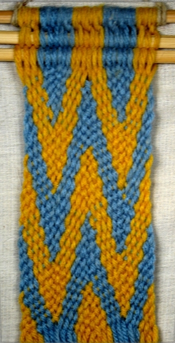 Then the [part 1] weft strand is returned to the warp bundle.
