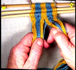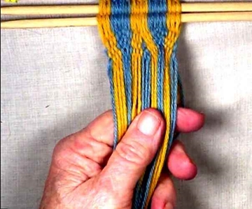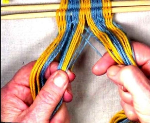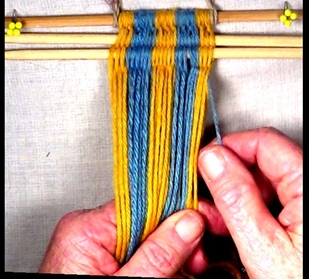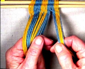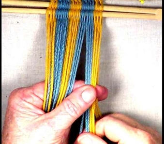 [NOTE] Each strand moves from the shed layer it is in the left hand to the opposite shed layer in the right hand.