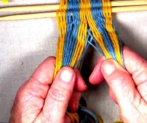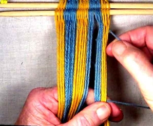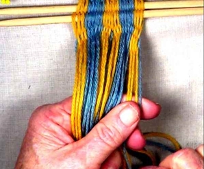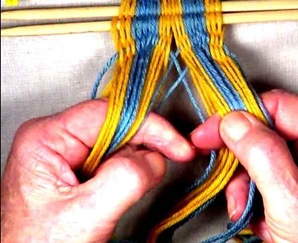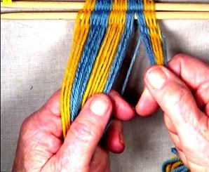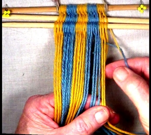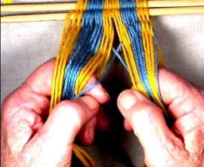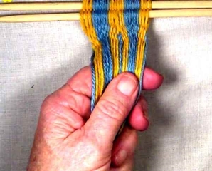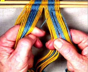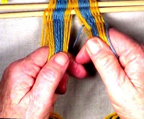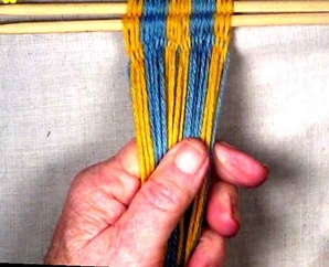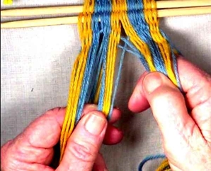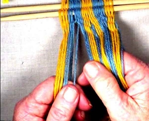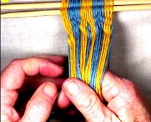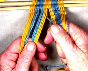 • Starting on the left hand side of the [part 1]shed, move one warp strand at a time to the idex finger of the left hand.
