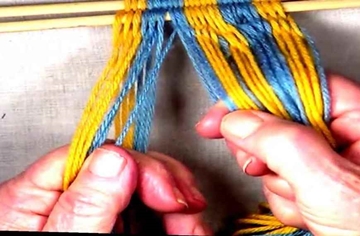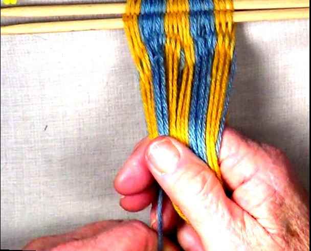 ----Start on the right hand side of the [part 2] shed, move one warp strand at a time to the idex finger of the right hand.