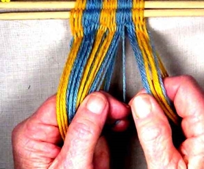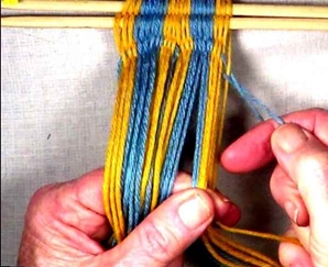 [NOTE] Use the third and fourth fingers of the right hand to maitain some tention on the [part 1] warp strands.