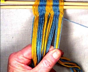 • Return the [part 1] weft strand to the warp bundle.