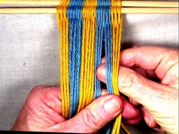 Start on the left hand side of the [part 3] shed, move one warp strand at a time to the idex finger of the left hand.