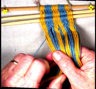 ----Start on the left hand side of the [part 3] shed, move one warp strand at a time to the idex finger of the left hand.