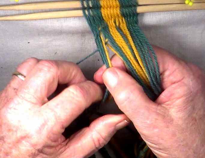 Then transfer the Row 2 shed to the index finger of the left hand. |